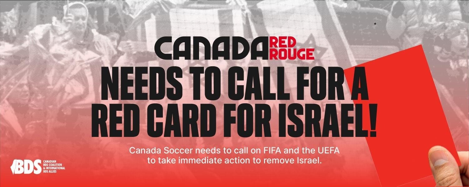 The BDS World Cup campaign takes aim at Canada Soccer's "CanadaRED" campaign, an “enhanced way for fans, supporters, and donors to connect with Canada Soccer” and demonstrate “Canadian pride,” as well as being the exclusive platform to get tickets for the 2026 FIFA World Cup.