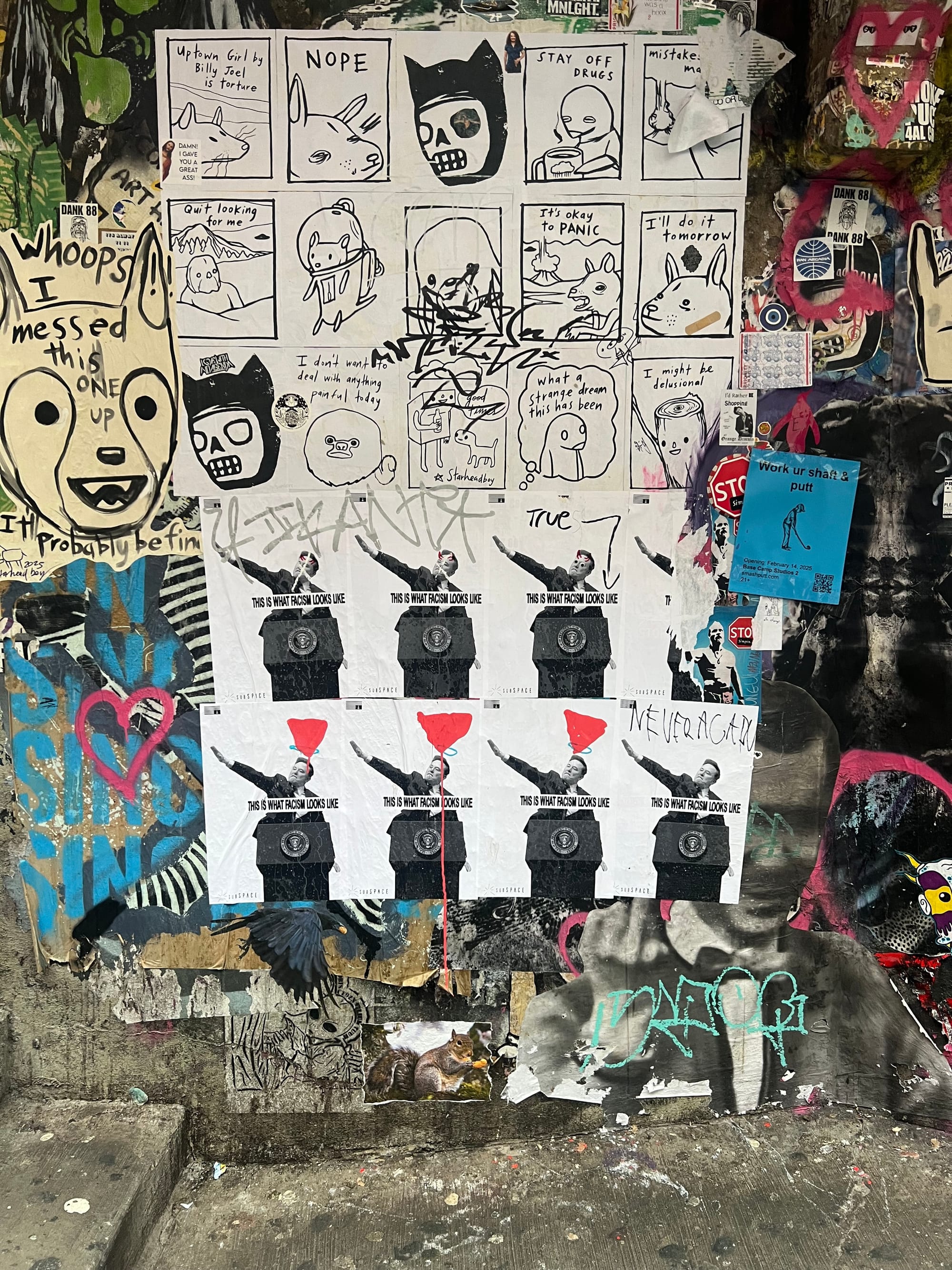 We noticed the woman with her bottle blonde friend as they ducked down an alley, peeked out, watching and laughing. My friend gave these American Karens a Canadian middle finger for being so mean.