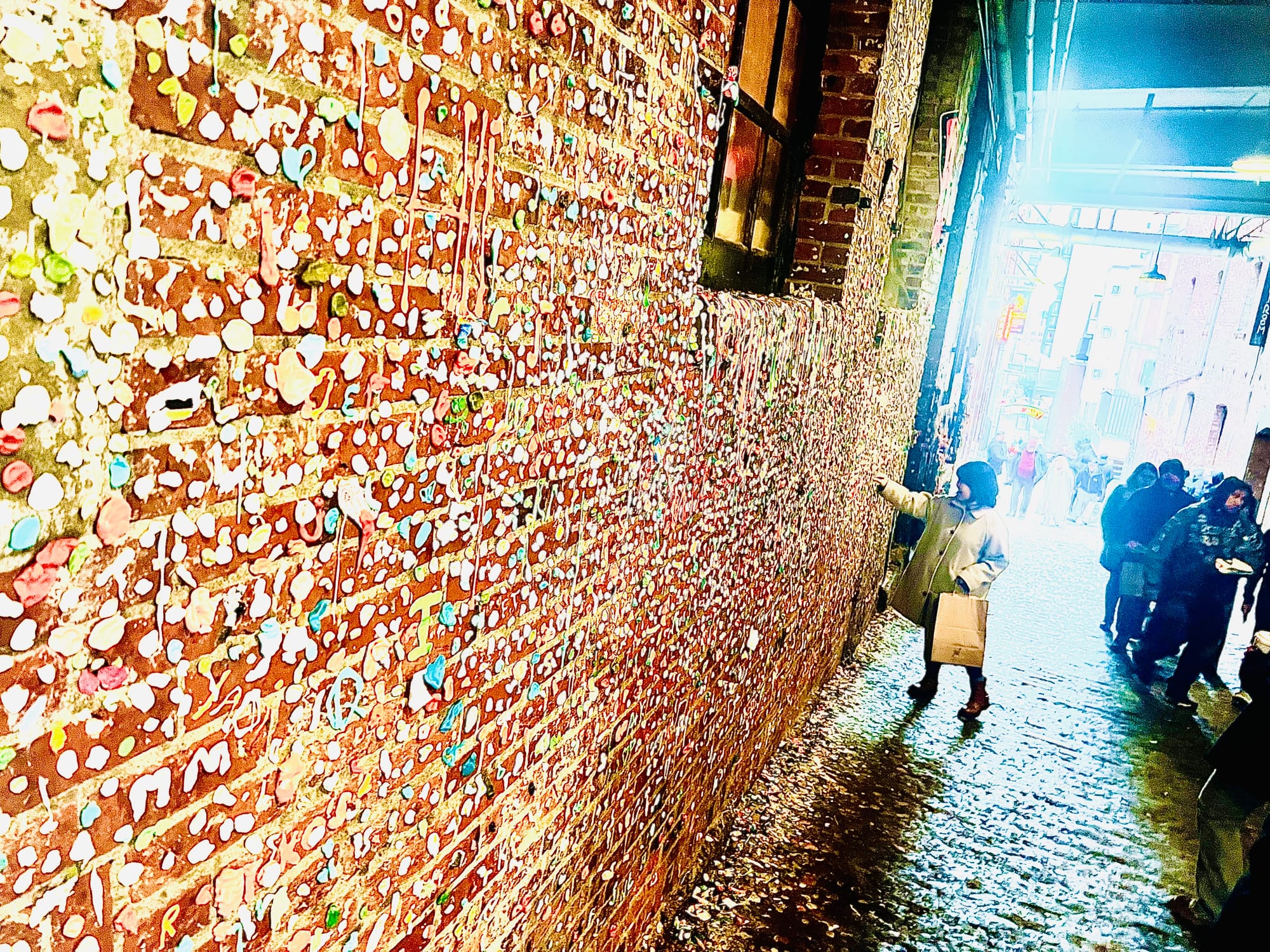 We saw the fish throwing guys. The gum wall. Some great graffiti. Grabbed a pork stick and a bbq pork bun and walked around.