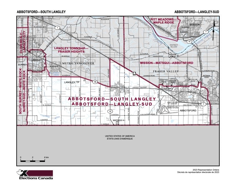 The electoral district of Abbotsford-South Langley is the new riding created out of Abbotsford and portions of Langley with the 2022 federal electoral boundaries redistribution, and comes into effect as of March 23, 2025, with the election call. The riding includes most of the City of Abbotsford along with portions of the Township of Langley and the City of Langley.