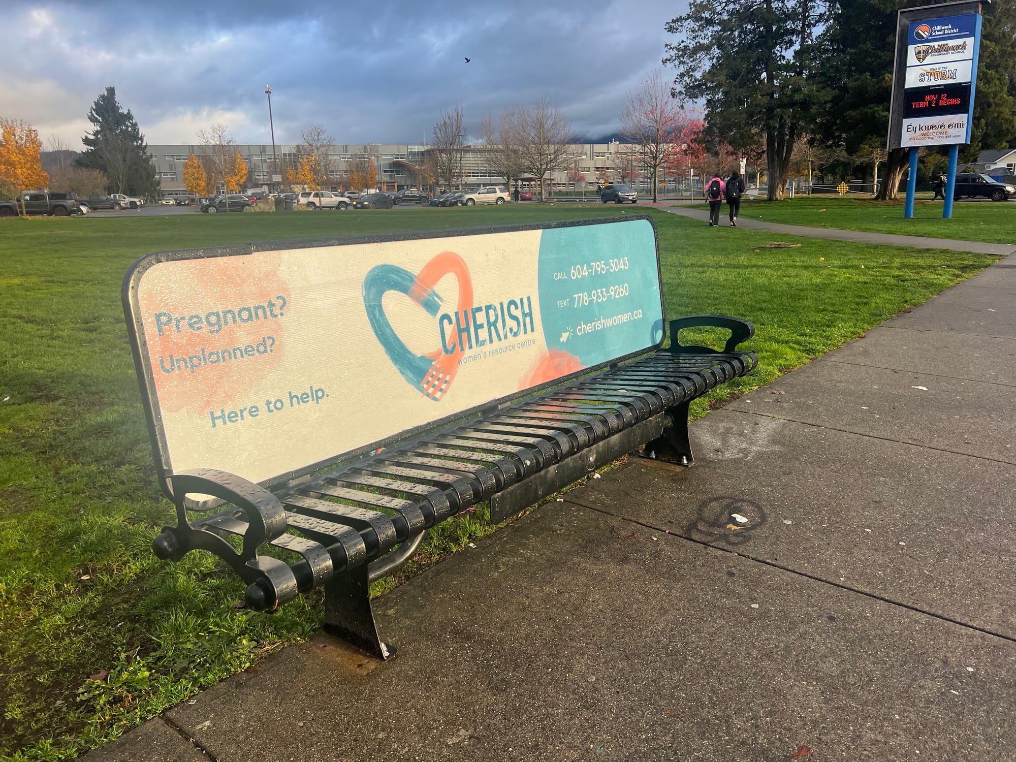 The ad on the bus stop bench in front of Chilliwack Senior Secondary School has been there for many months, maybe years: “Cherish Women’s Resource Centre.” It includes a logo with arms forming a heart, hands clasping with the words “Pregnant? Unplanned? Here to help.”