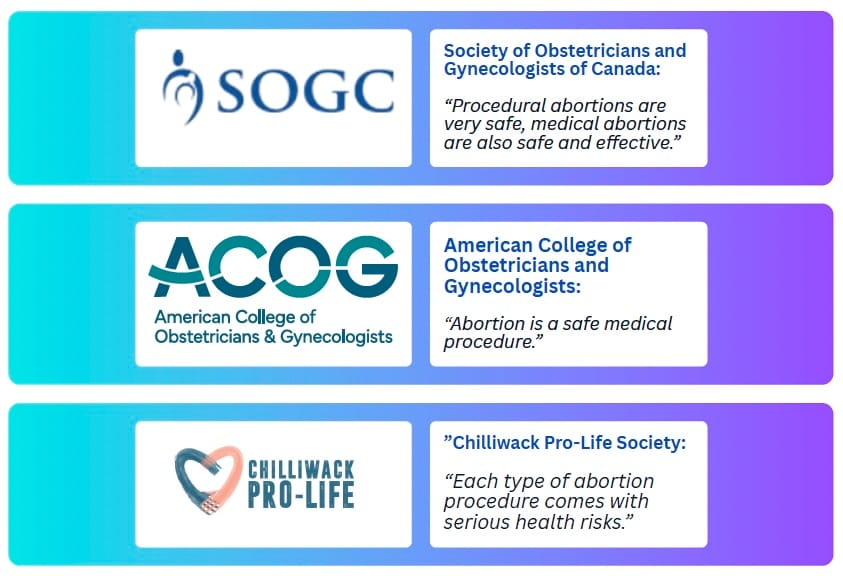 Even when the CPLS links to a reliable external source, it misrepresents the content from that source. For example, the Society of Obstetricians and Gynecologists of Canada says “procedural abortions are very safe, medical abortions are also safe and effective,” while their U.S. counterpart ACOG explains that “abortion is a safe medical procedure.”