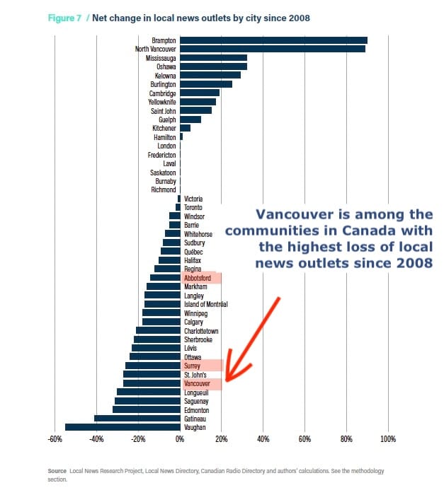 British Columbia cities have more people than ever served by fewer local news media outlets than 20 years ago