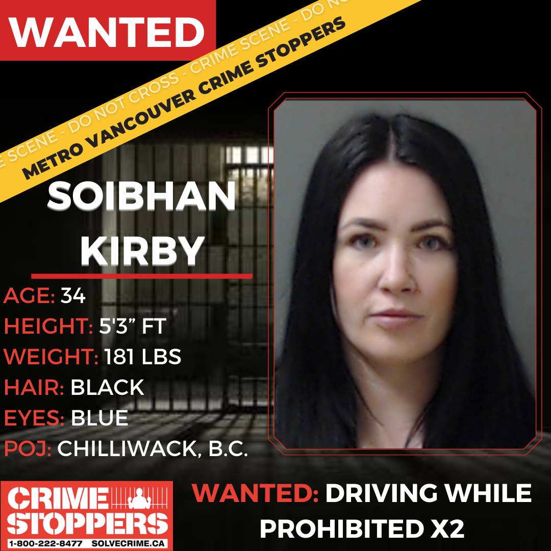 Kirby does not have a long list of contacts with the criminal justice system in B.C. In 2020, she had a driving while prohibited charge in Chilliwack, and in 2024 a warrant was issued for her arrest for two such charges.