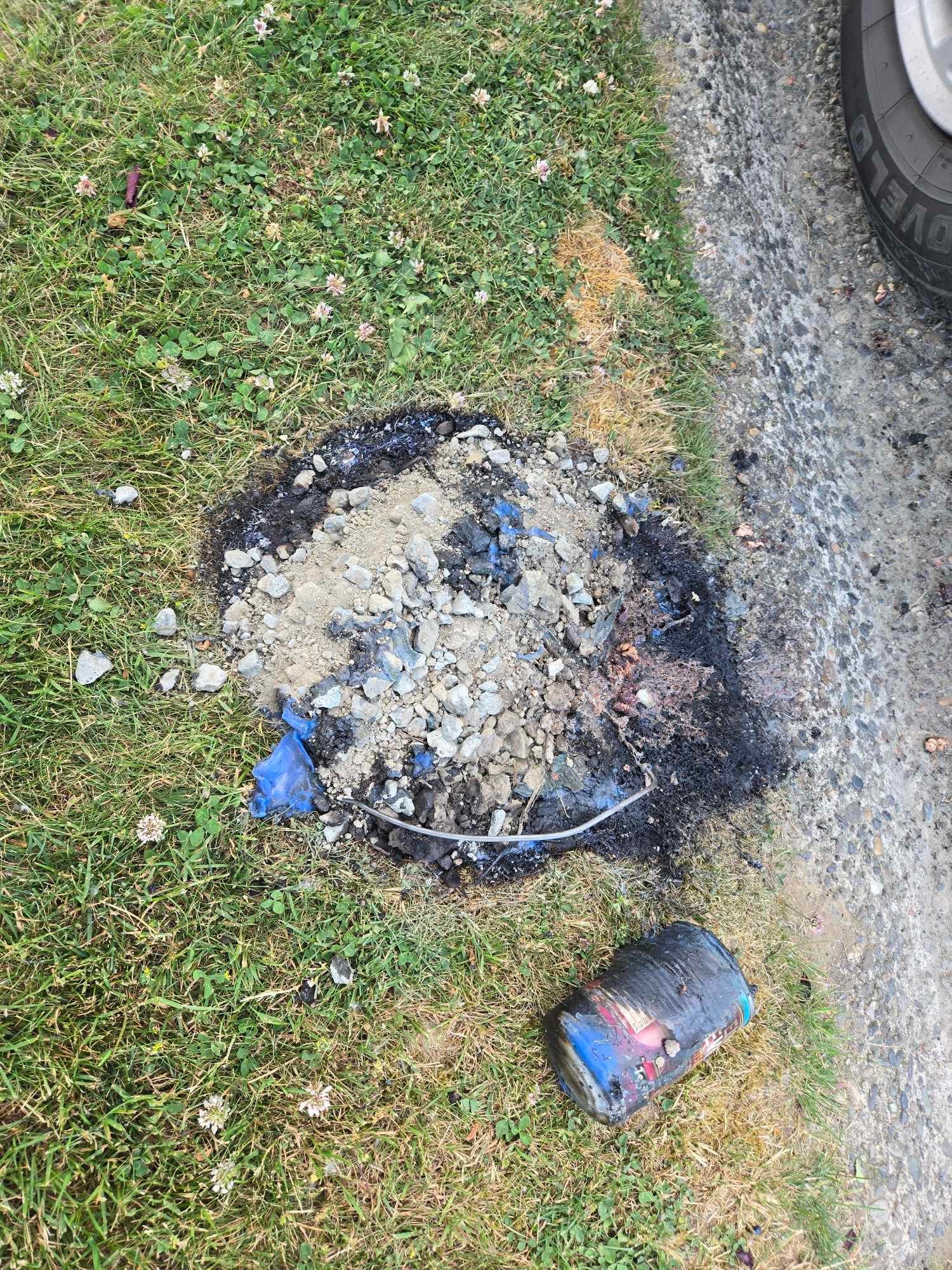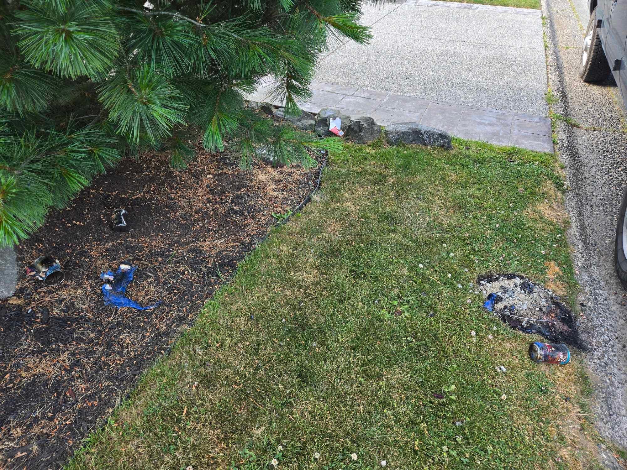 Recent small fires allegedly caused by small homemade bombs using food cans on or near Bonavista Street on Fairfield Island in Chilliwack. (Submitted)