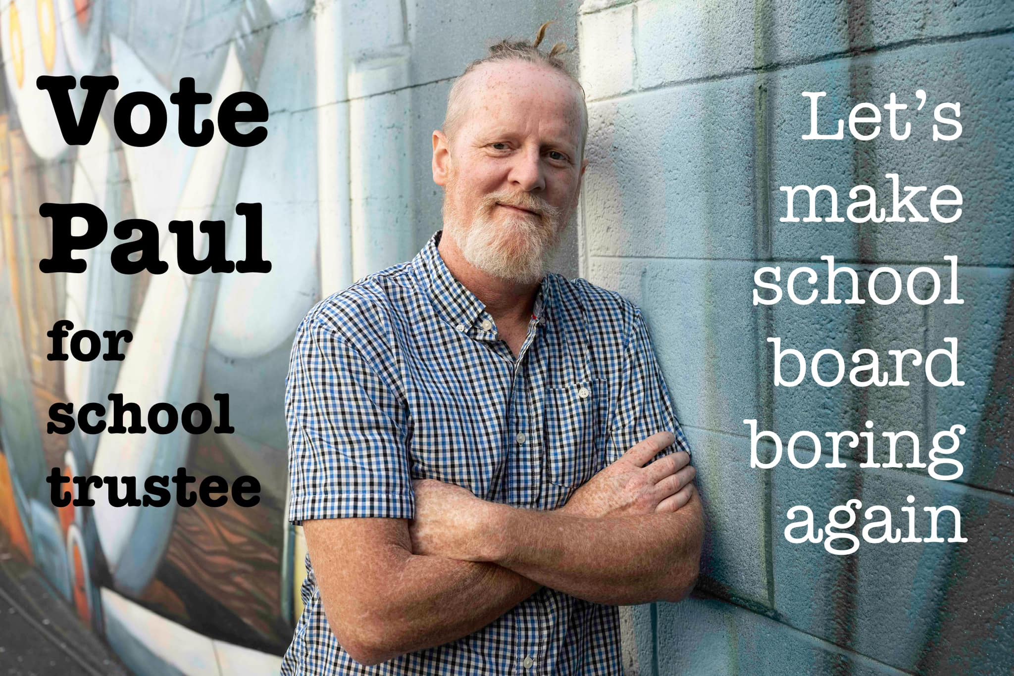 When I kicked off my fake campaign to run in the byelection, my slogan was "Let's make school board boring again."