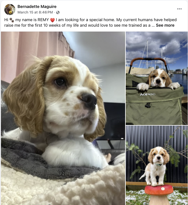 Eyal Lichtmann of RAPS in Richmond (left) and images from Chilliwack Animal Safe Haven executive director Bernadette Maguire's dog breeding Facebook page (Images from www.rapsbc.com/ Facebook)