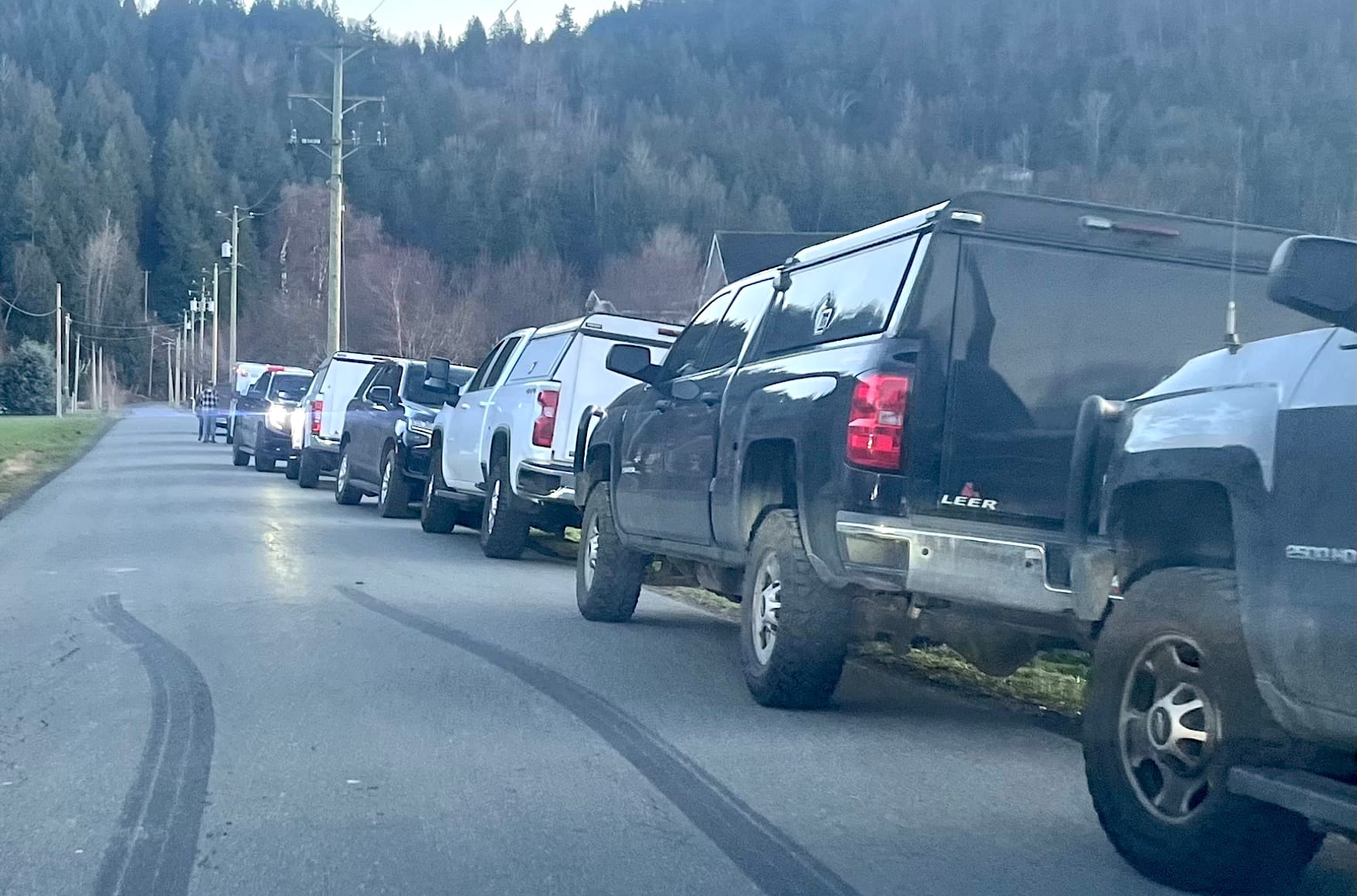 As the sun went down, it was unclear what if was underway, and Chilliwack RCMP isn’t saying much except that “several individuals were arrested,” later updated to clarify three men.