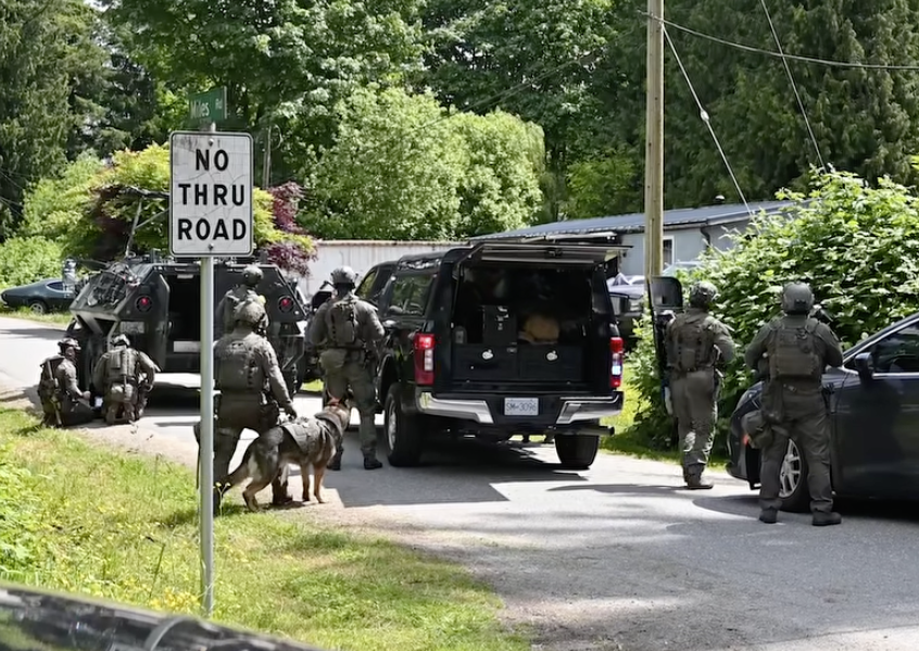 In response, the AbbyPD Crime Reduction Unit (CRU) launched an investigation targeting these individuals, and on May 20, with support from the AbbyPD Drug Enforcement Unit (DEU), the Lower Mainland District Integrated Emergency Response Team (LMD IERT), and the LMD Integrated Police Dog Services (IPDS), a search warrant was executed at a property in the 39900-block of Campbell Road in Abbotsford just west of Yarrow in the southwest corner of Chilliwack.