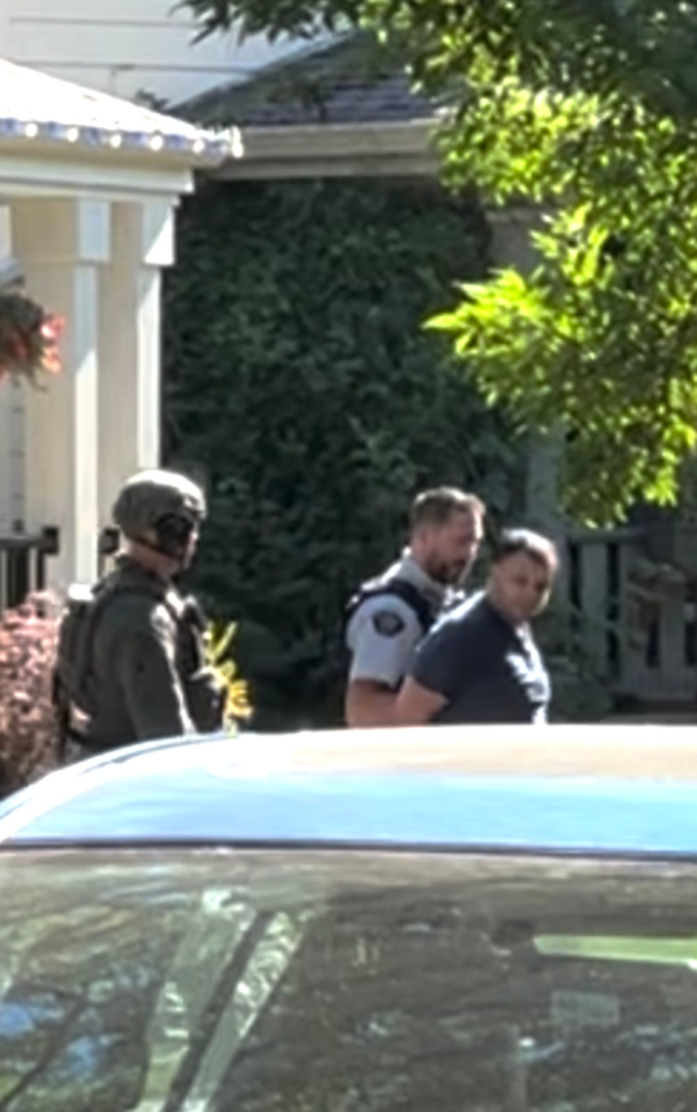 Wyatt William Scott being arrested by RCMP ERT officers after a protracted standoff at a house in the Garrison Crossing neighbourhood in Chilliwack on July 16, 2023. (Paul Henderson video)
