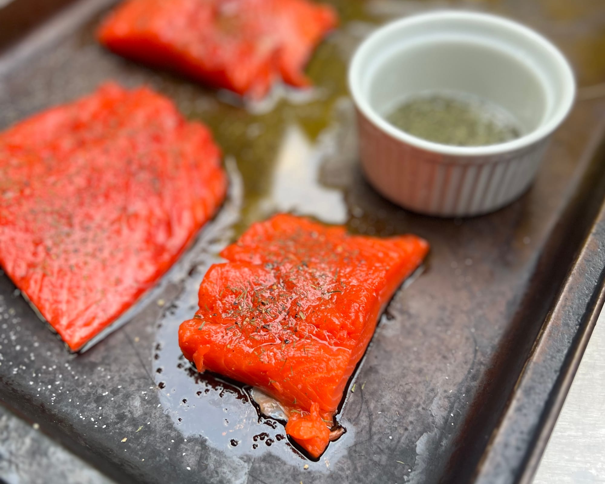 As for cooking freshly caught sockeye filets, as with cooking a ribeye steak or a cob or corn or serving a newly picked tomato, simple is best. None of those four things ever need anything much more than oil or butter, and salt and pepper.