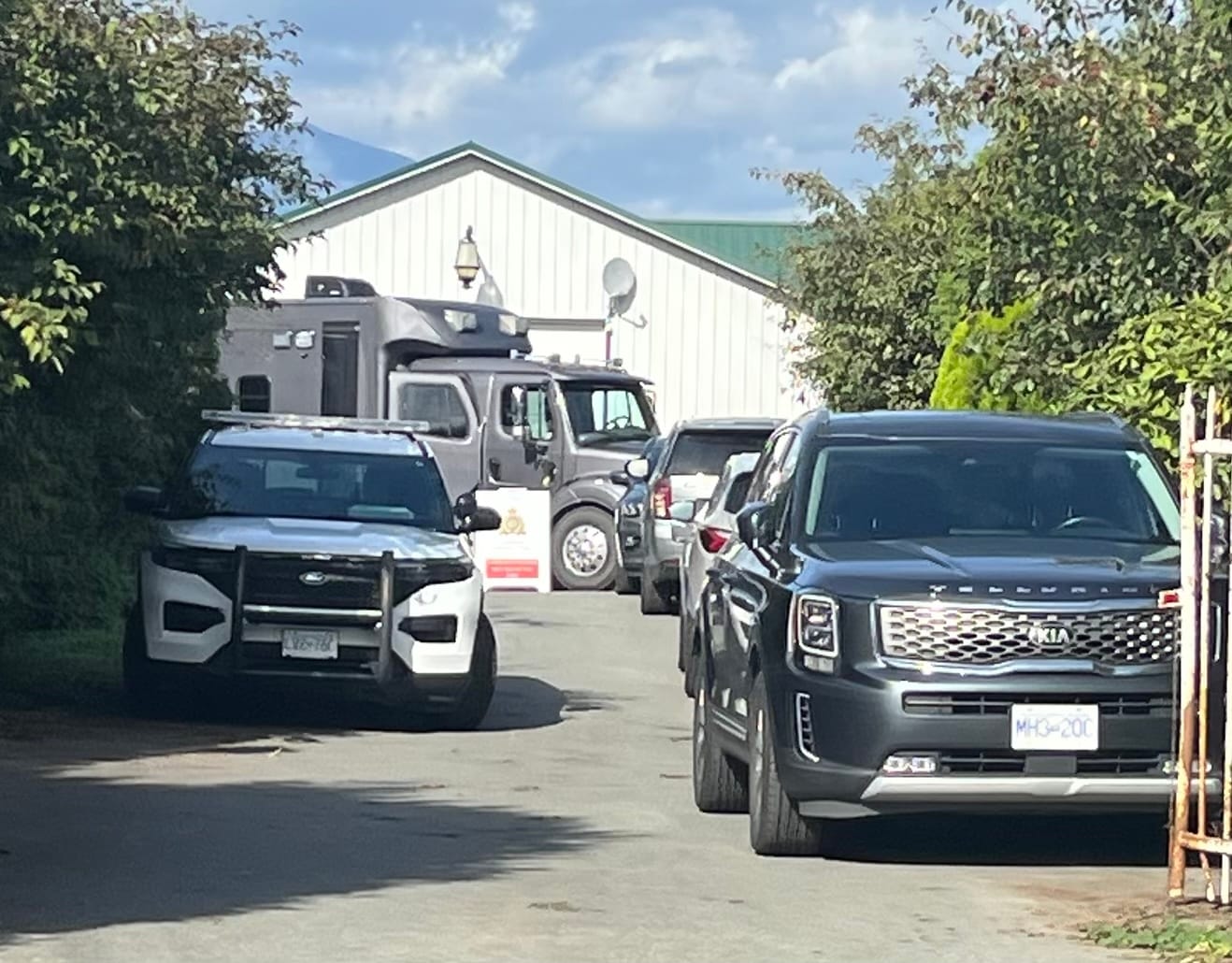 Multiple search warrants were executed last Thursday (Oct. 2, 2025) at two residences, two storage lockers, and what RCMP call a clandestine lab located at 44843 South Sumas Rd. as part of an ongoing drug production and trafficking investigation.